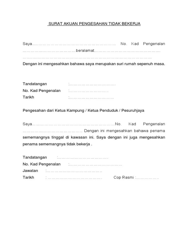 Contoh Surat Pengesahan Tidak Bekerja Dari Ketua Kampung - Surat Akuan Pengesahan Tidak Bekerja Pdf